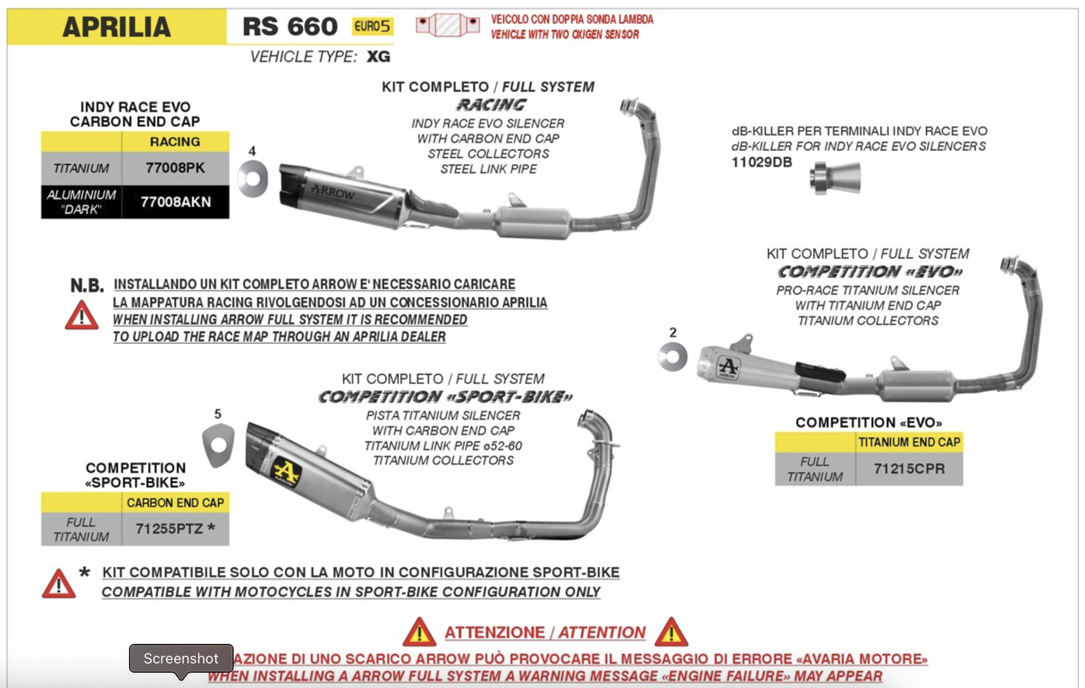 Arrow Racing Full Exhaust System w/ Indy Race EVO Titanium Silencer | Aprilia RS 660 (2025)