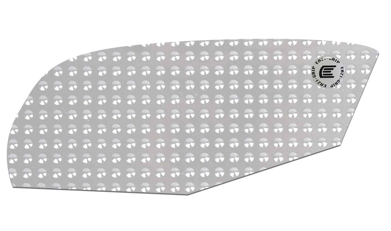 The ‘Evo’ series tank grip features pronounced hemispherical traction domes. Ideal for riders who want that added level of confidence by being able to feel the grip through their leathers. Available in Black and Clear.