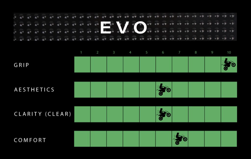 The ‘Evo’ series tank grip features pronounced hemispherical traction domes. Ideal for riders who want that added level of confidence by being able to feel the grip through their leathers. Available in Black and Clear.