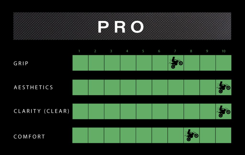 The ‘Pro’ series tank grip is a polyurethane grip that features a low profile circular embossed pattern with a sleek and dynamic profile that allows greater rider movement on the bike. Available in Black or Clear.