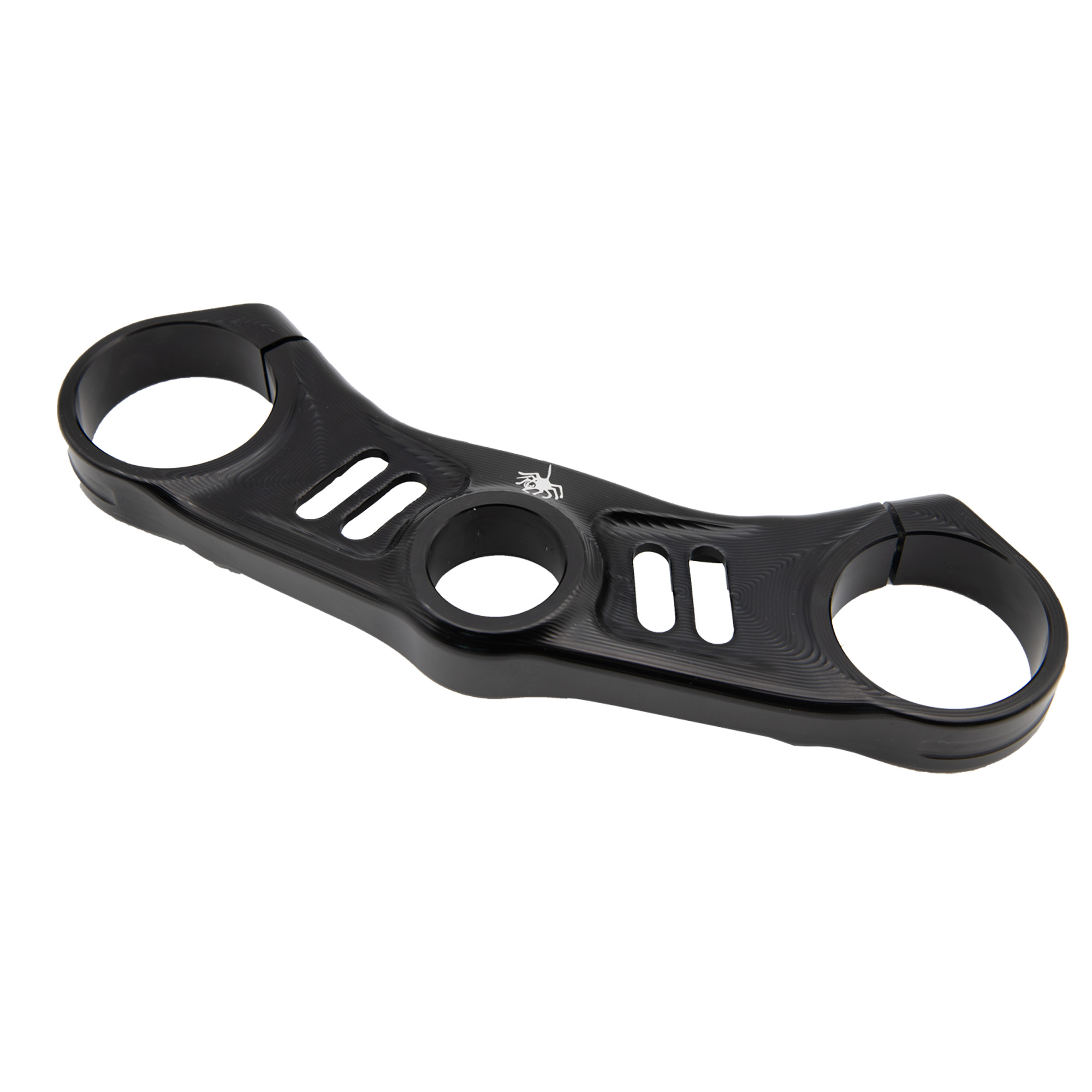 Top triple clamp fork bridge which combines weight savings and performance. These are designed for more then just aesthetics and weight reduction: In fact, they’re designed to make the front-end more flexible and sensitive to lateral loads. We achieved good elasticity that allows for better response and feel from the front for the rider. Aesthetically, it’ll radically changes the way you bike looks.