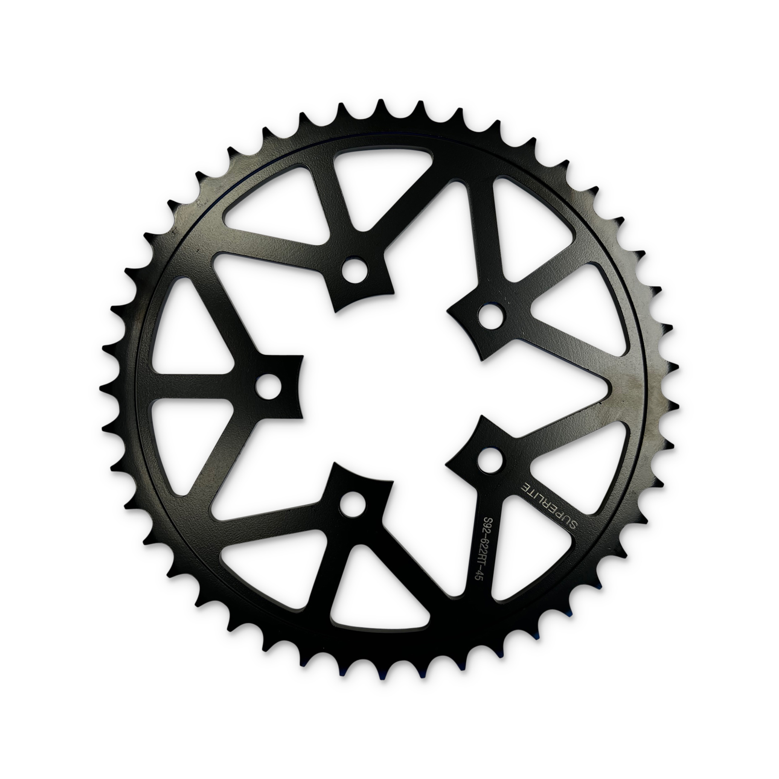 - The lightest steel rear sprocket on the market (43 Tooth Rear Weighs 1.6 lbs)